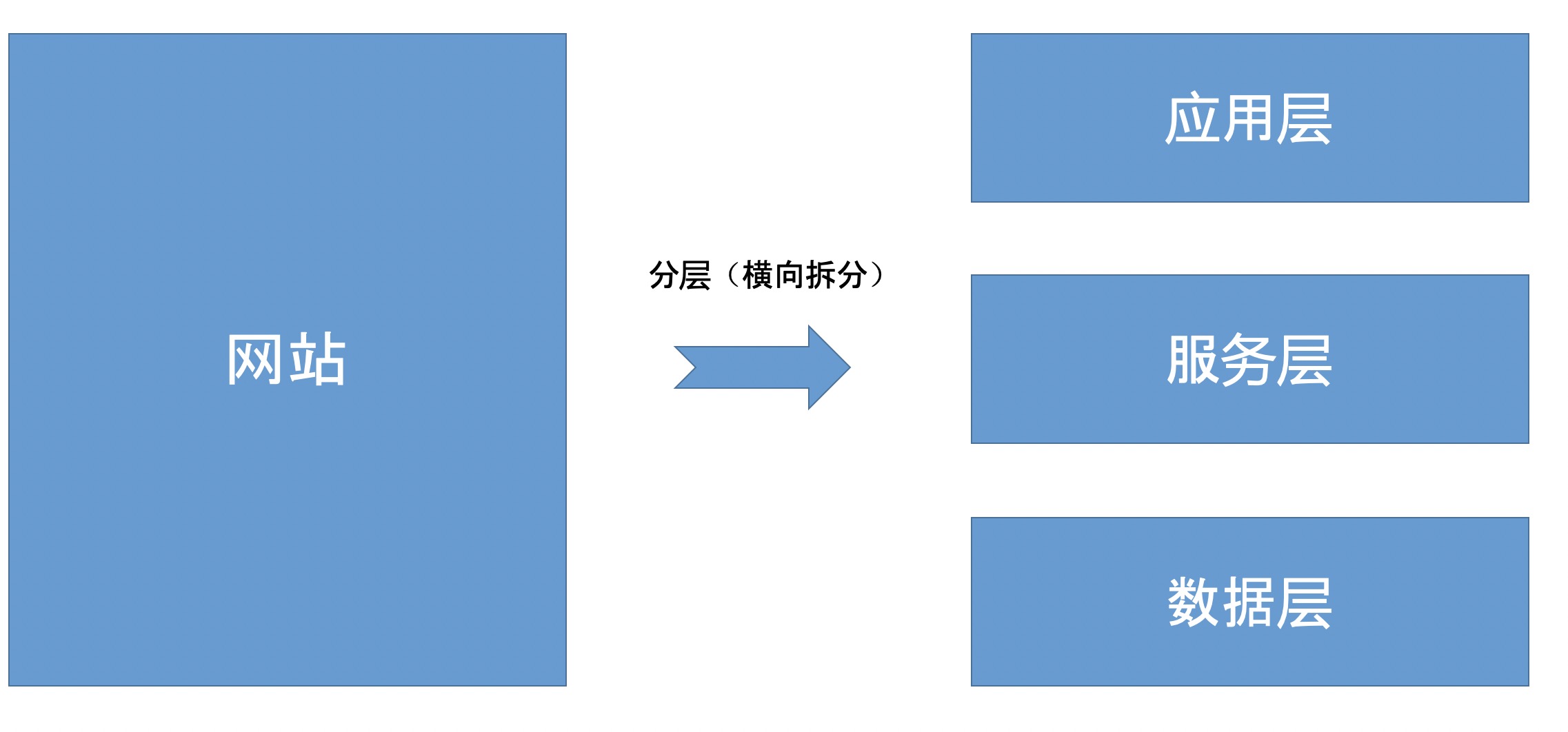 分层也被称为横向拆分。最简单容易理解的例子是,网络的七层通信协议,完美的诠释了分层的重要性。对系统分层,也使得逻辑清晰,职责分明,不同层次处理不同的事情。